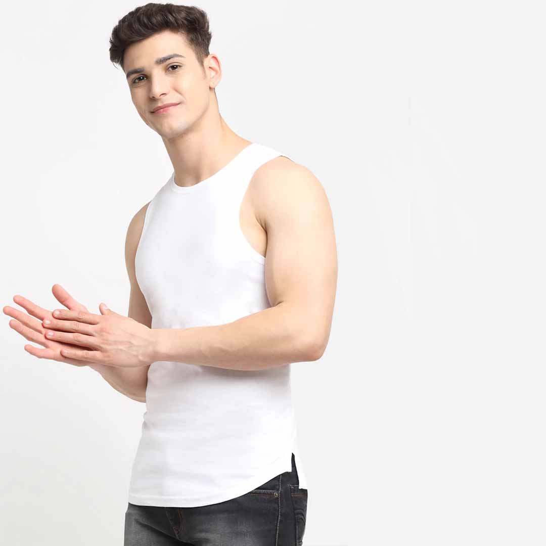 high quality premium solid casual sleeveless round neck apple cut gym vest direct manufacturers. 100% pure cotton 175 - 180 gsm cotton used. gives you perfect fit, comfort feel and handsome look. trusted brand online and no compromise on quality.