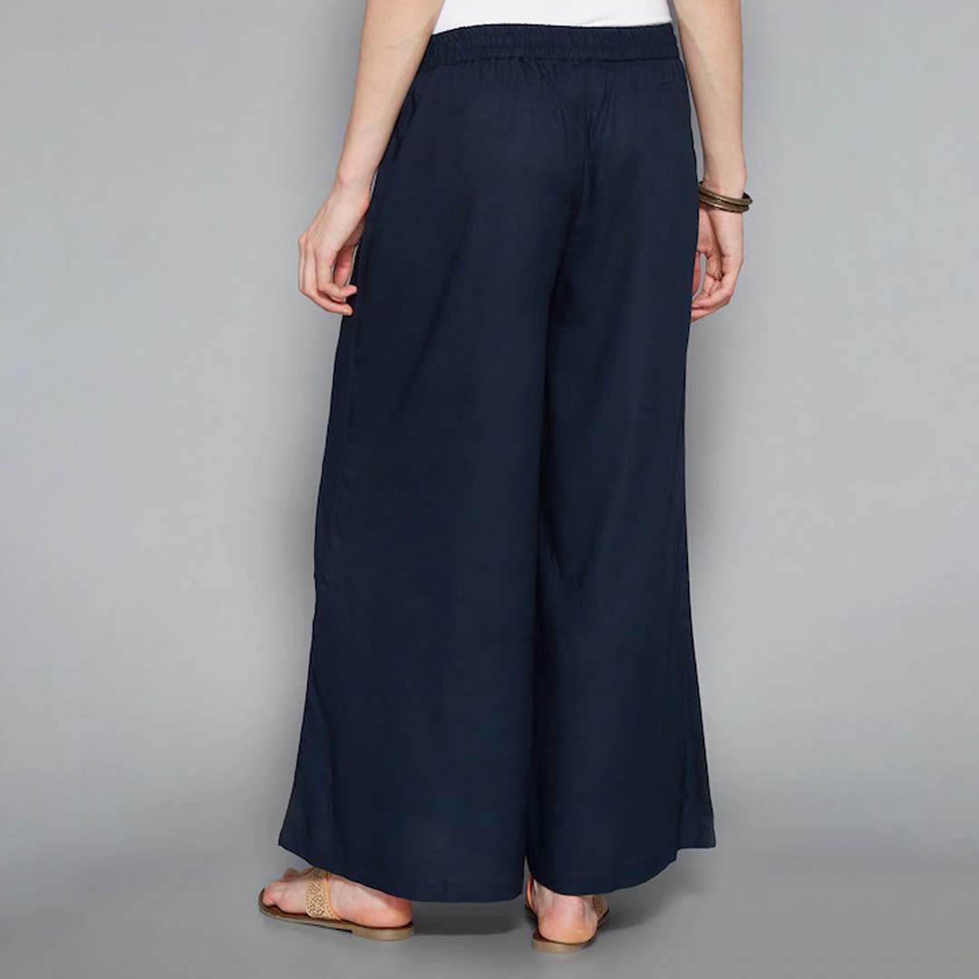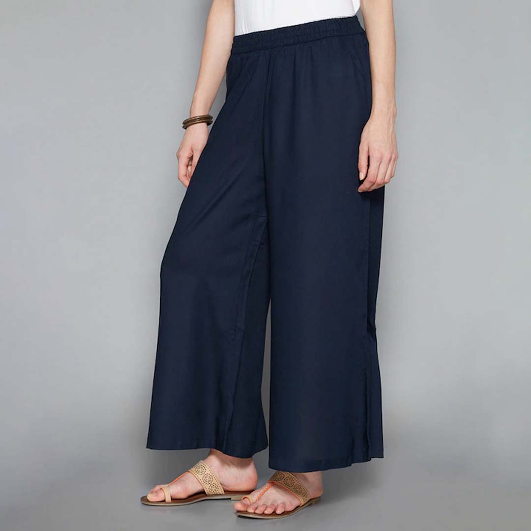 Size & Fit Flared fit The model (height 5'8) is wearing a size S Solid solid Opaque Flared fit Elasticated waistband Length: regular Woven viscose rayon fabric Material & Care Machine Wash