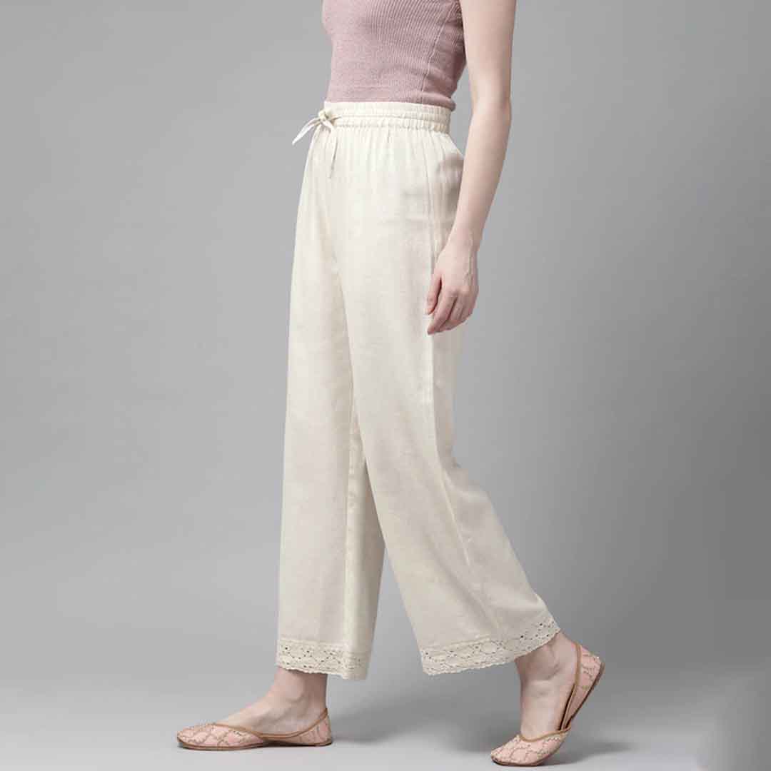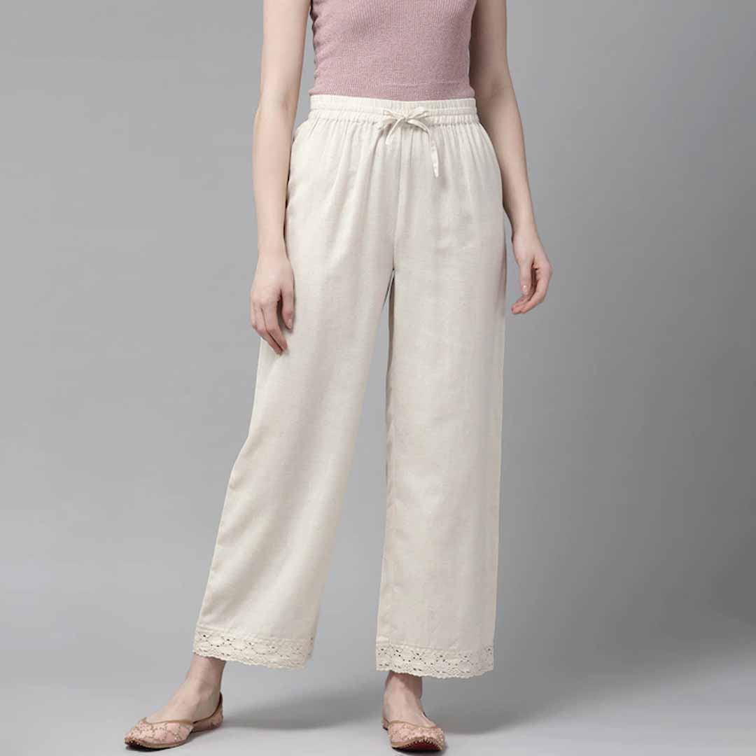 Pair of Off-white solid woven straight fit palazzos