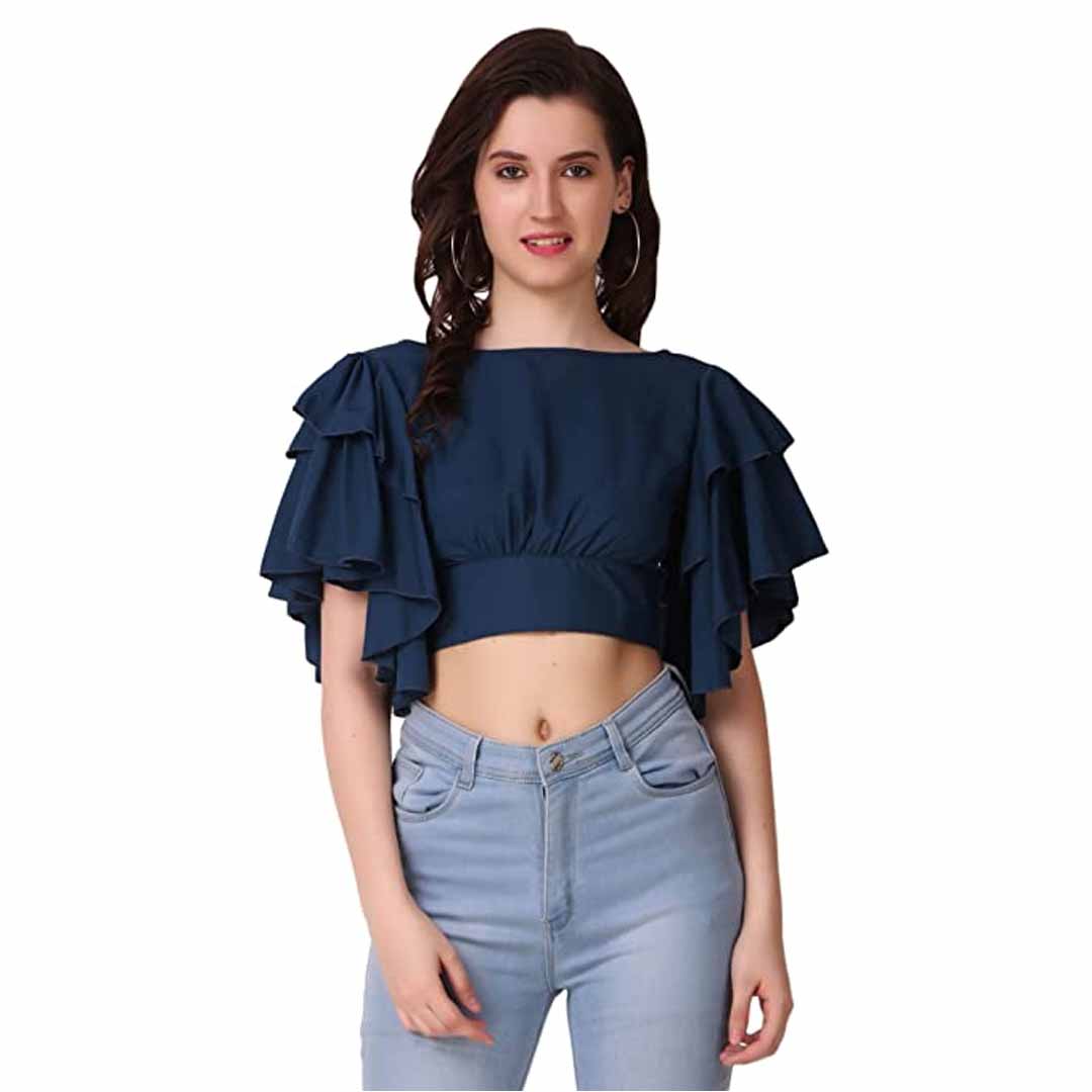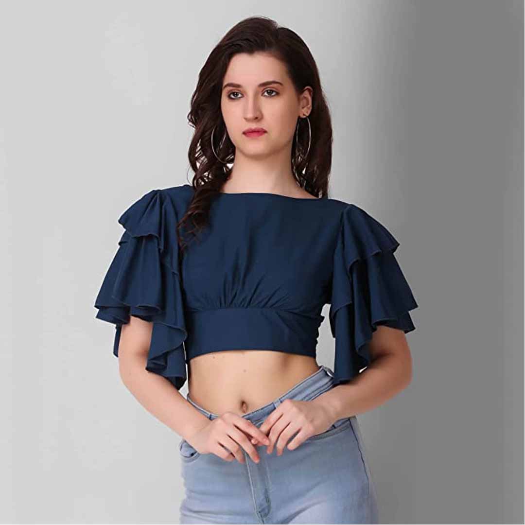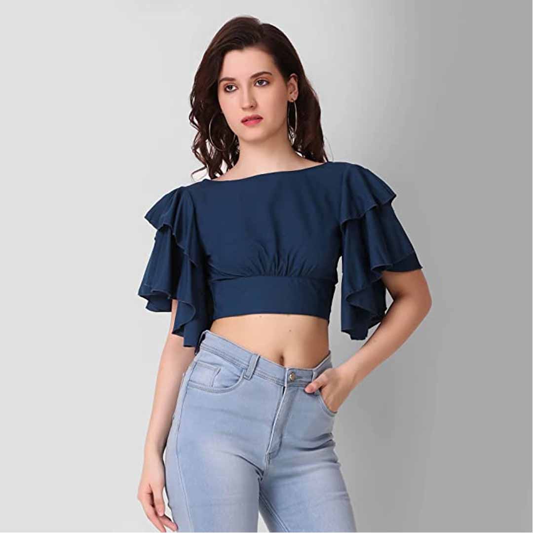 Make a statement with this cropped knit top featuring an off shoulder neckline, short sleeves, and a crop tie closure at the hem. This casual yet chic top would look perfect paired with a denim mini skirt, round sunglasses, and ankle booties.