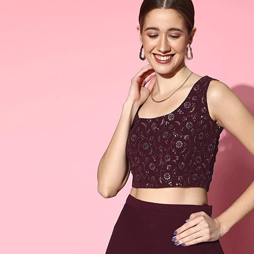 A smart cut on a lehenga can elevate your style and balance your look. It’s the right garment if you want to go traditional or experiment with a new look. The intricate stitching of this lehenga choli along with the fabric and embellishments makes for a versatile look that you can recycle at weddings, parties and festivals.