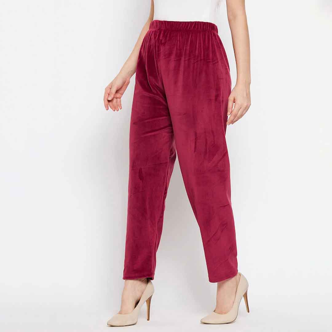 Size & Fit Straight fit The model (height 5'8) is wearing a size S Solid Opaque Straight fit Elasticated waistband Length: regular Woven velvet fabric Material & Care Velvet Hand Wash